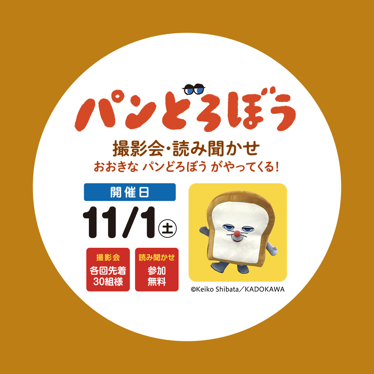 パンどろぼうと写真を撮ろう!絵本の読み聞かせもあるよ! [日程]11月