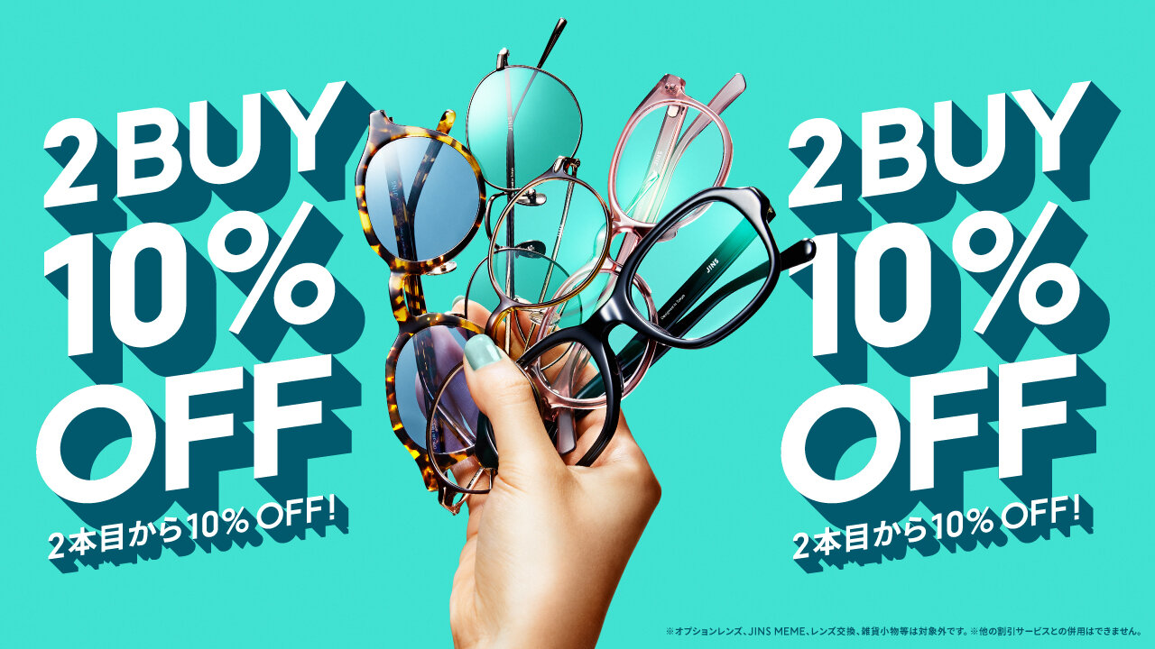 JINSでは、メガネやサングラスのまとめ買いで2本目から10%OFFになるキャ